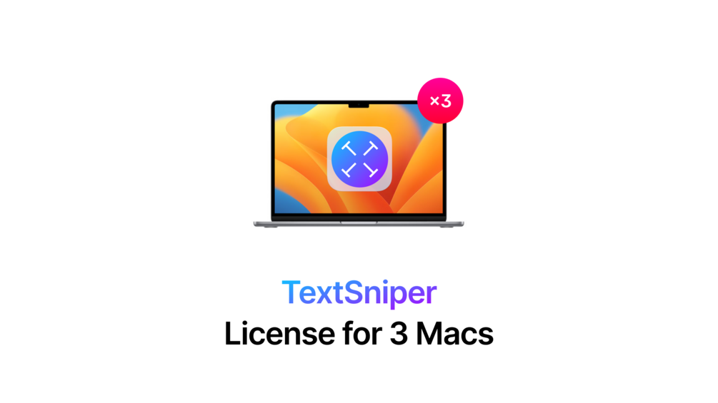 Add extra seats to your existing license so you can use TextSniper on up to 3 different Macs at the same time.